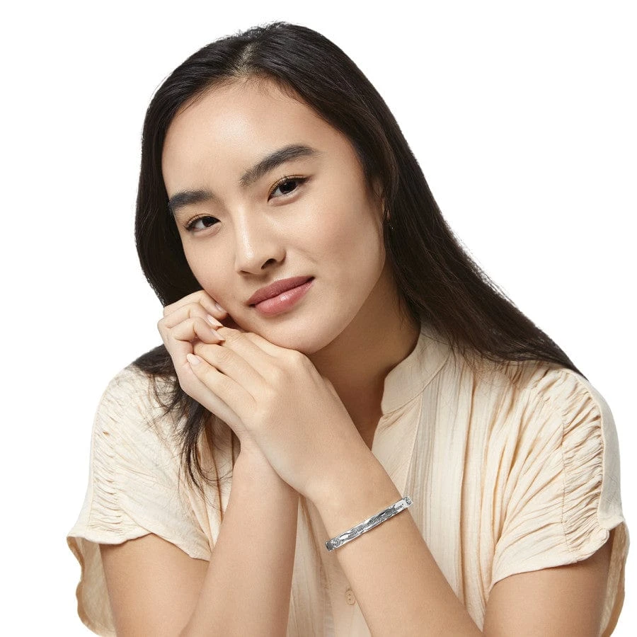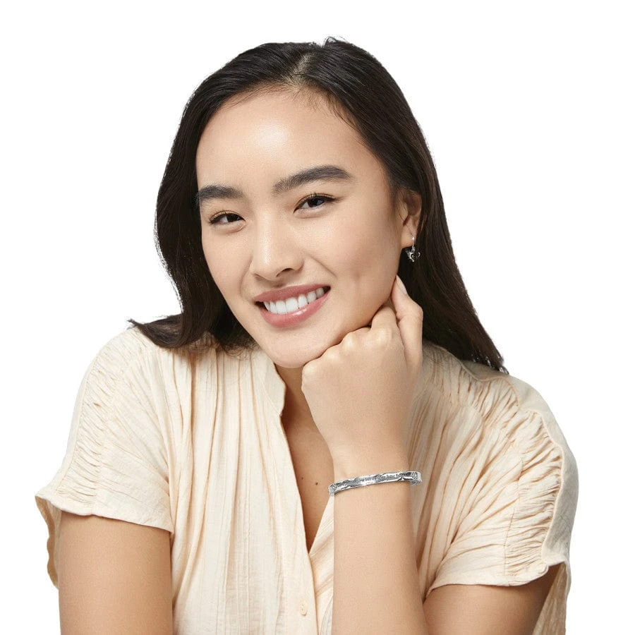 Inspirational words and small crystal highlights make this bangle both meaningful and fashionable. Etched saying “Some people come into our lives, leave footprints on our hearts, and we are never the same.”