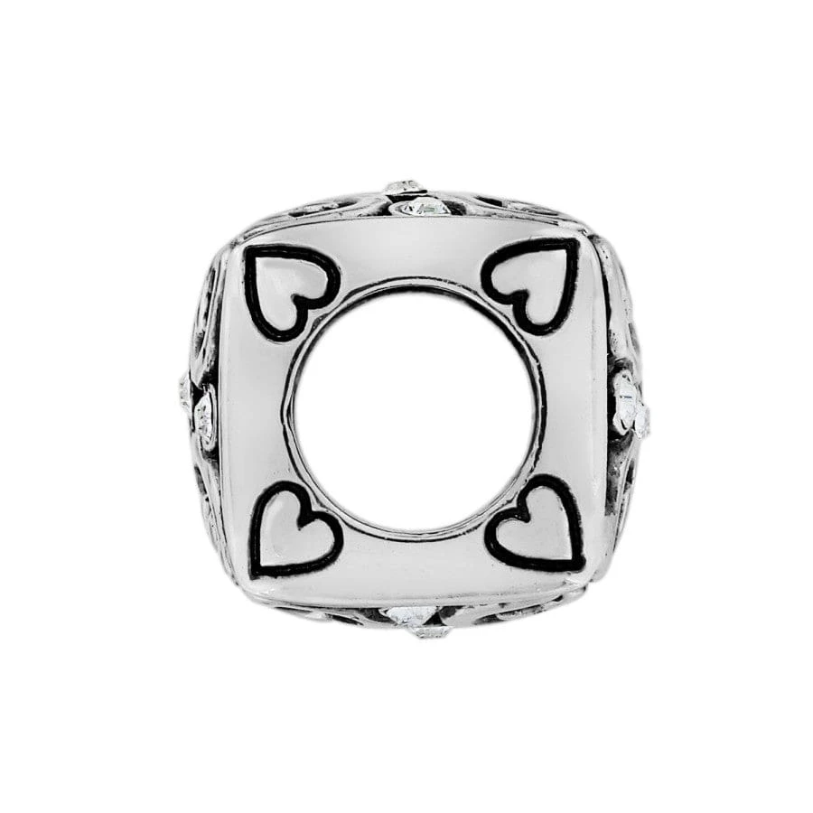 Three fine quality crystals, all in a row, embellish this cubed bead. Its pierced leaf and openwork scrolls match the Giardino collection, making this bead a pretty mix-and-matcher!