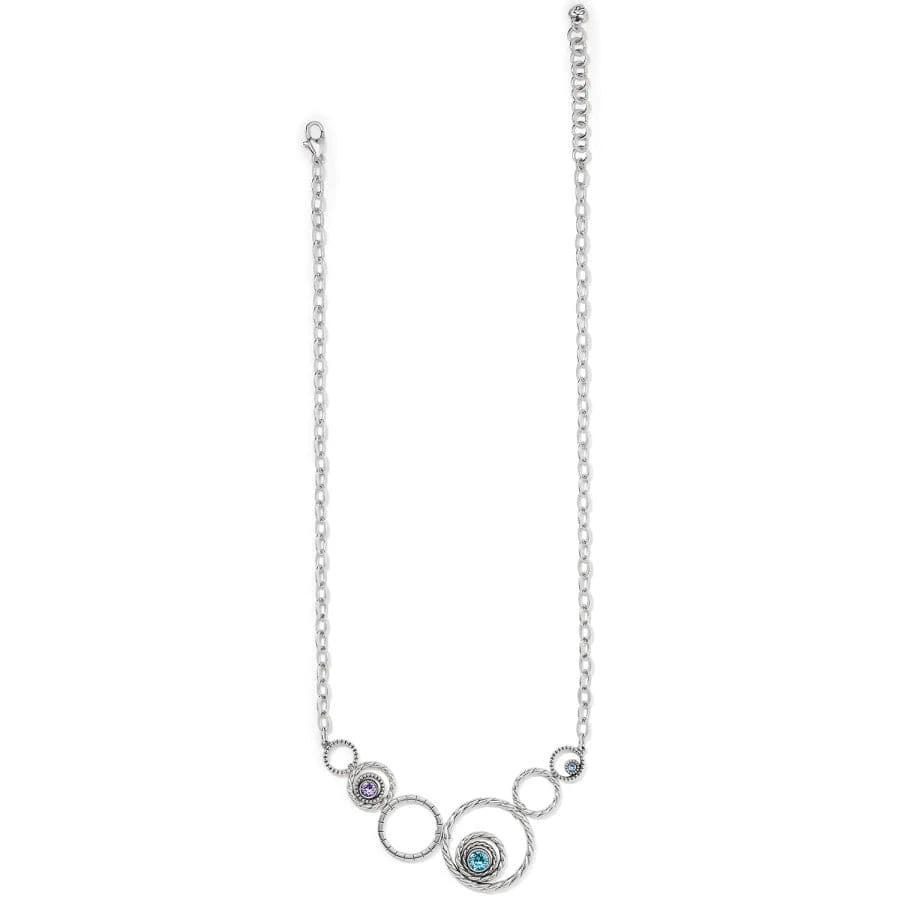 Like the orbiting stars that inspired its design, this statement necklace with hand-set fine quality crystals in shades of blue will send your spirits soaring.