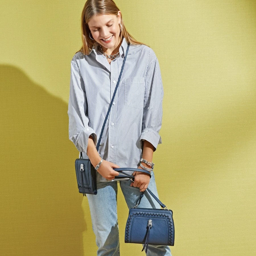Celtic-inspired hardware and woven details lend elegance to this understated phone organizer, the perfect place to carry your cell!