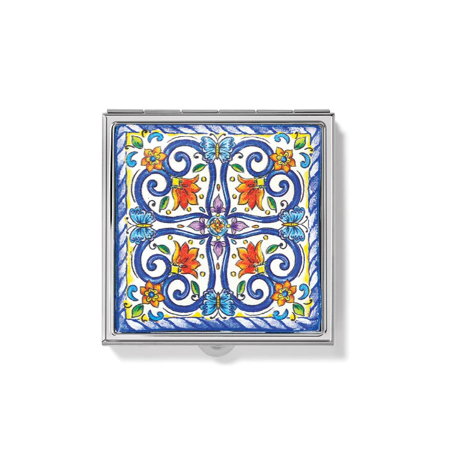 Majolica tiles of Deruta, Italy inspired the artwork our designer created to make you feel happy every time you pull this pill box out of your handbag.