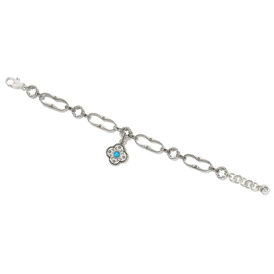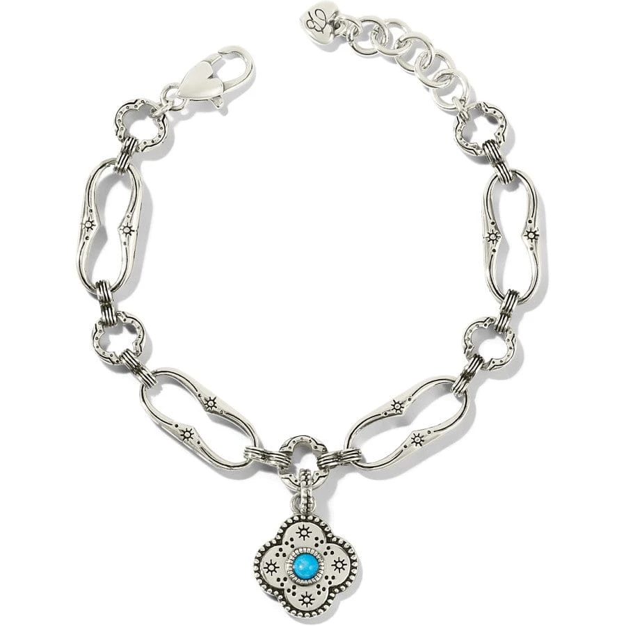 Etched in southwest symbolism and inspired by handmade Mexican Talavera tiles, this necklace features semi-precious howlite that looks like real turquoise.