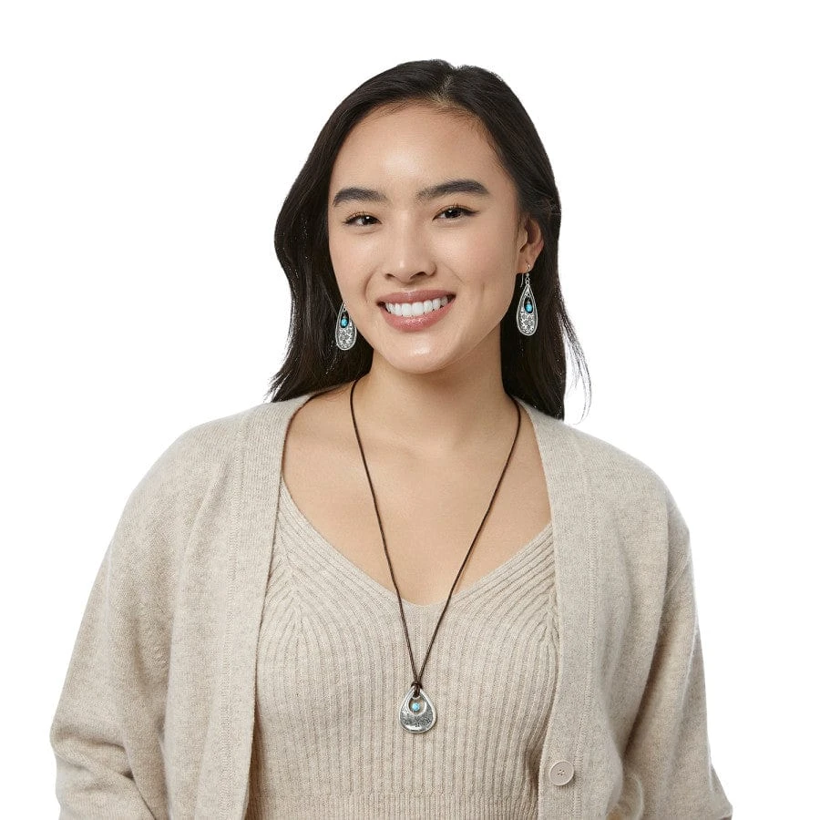 Inspired by the patterns seen in Mexican Talavera tile, this necklace with a handmade look features a faceted turquoise coin-shaped bead and etched motifs.