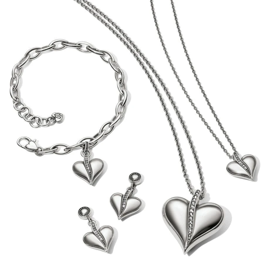 Reminiscent of handmade, sculpted fine sterling silver jewelry, this bracelet has a pillow-shaped heart dangle with a river of fine crystals – making it perfect for